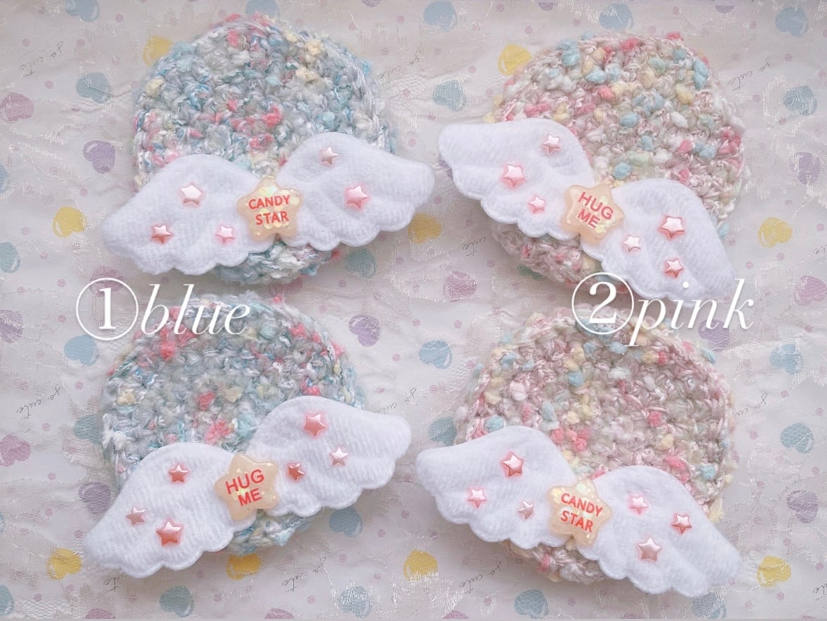 パステルなぽこぽこ毛糸で編んだベレー帽。:* .・゚
