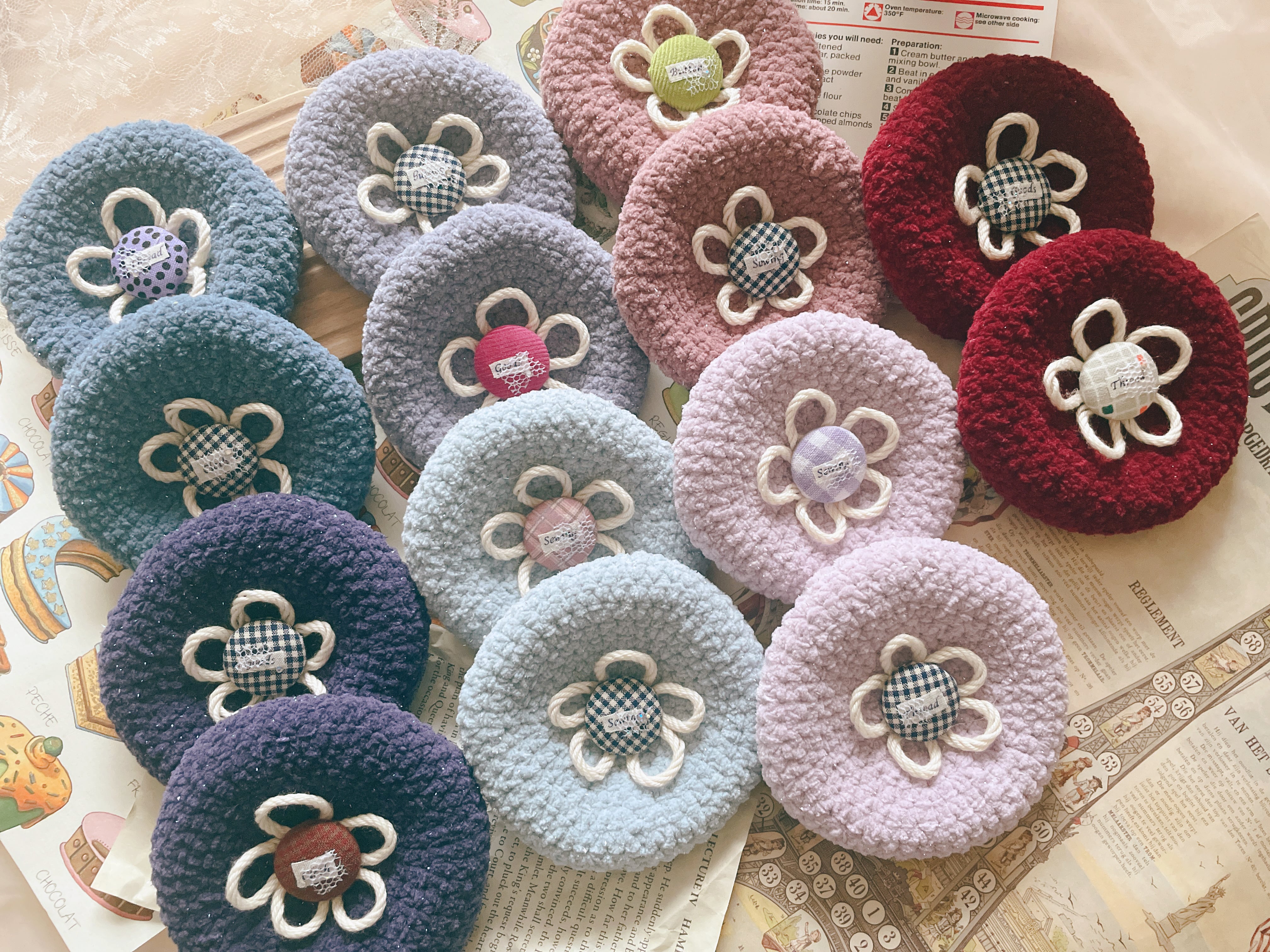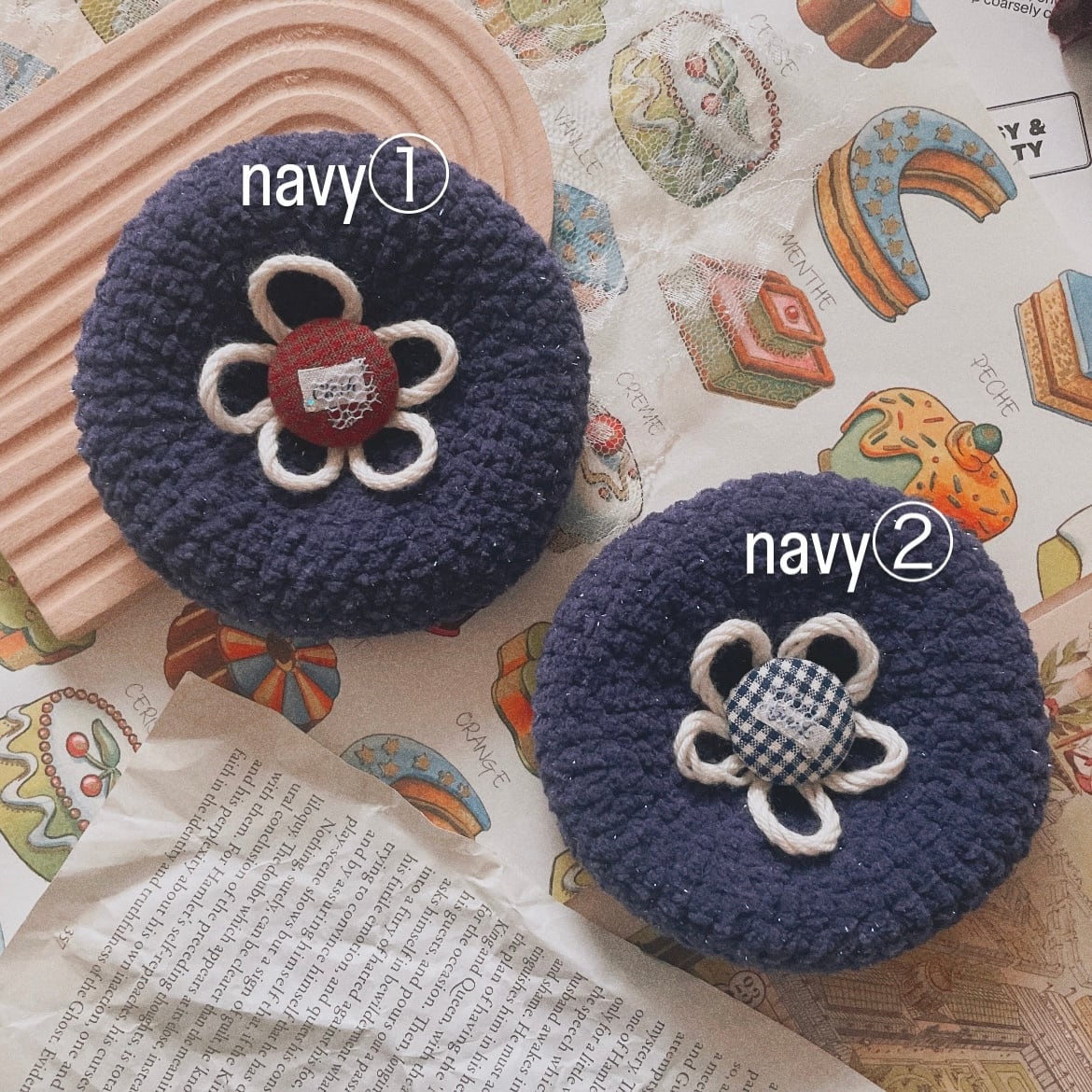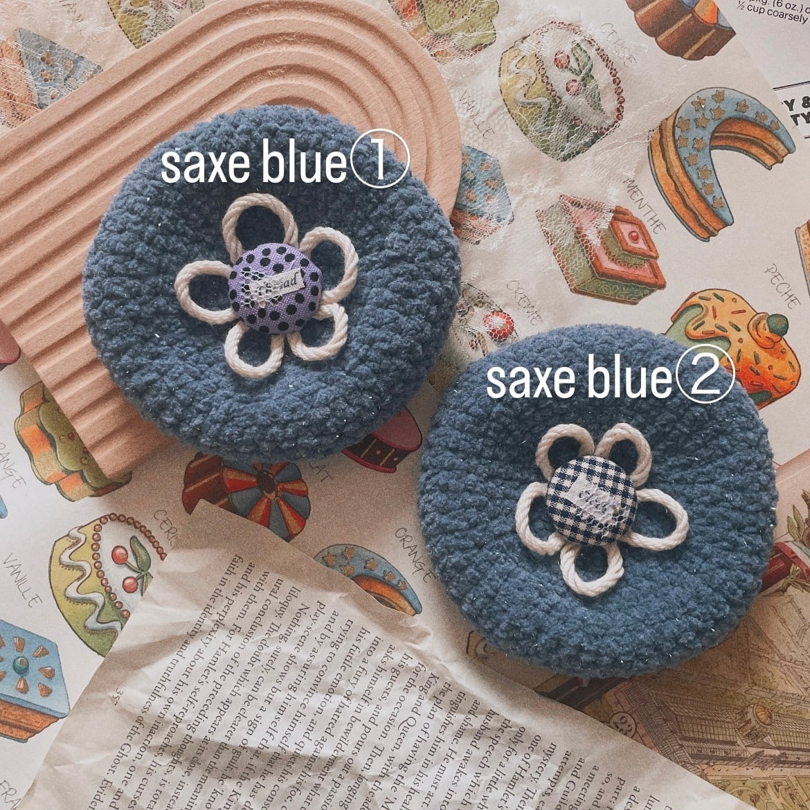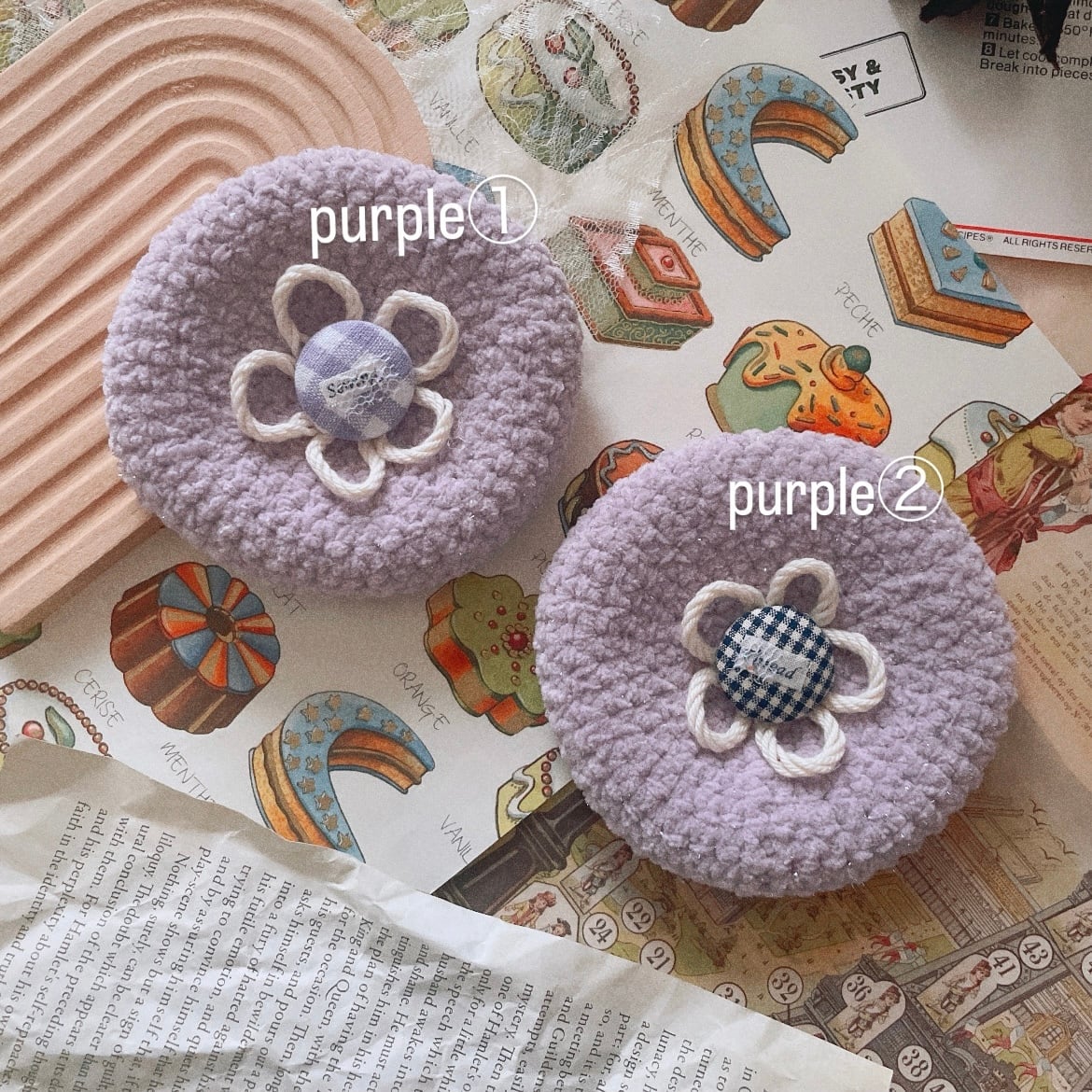 秋カラーのもこもこ毛糸で編んだベレー帽。:*