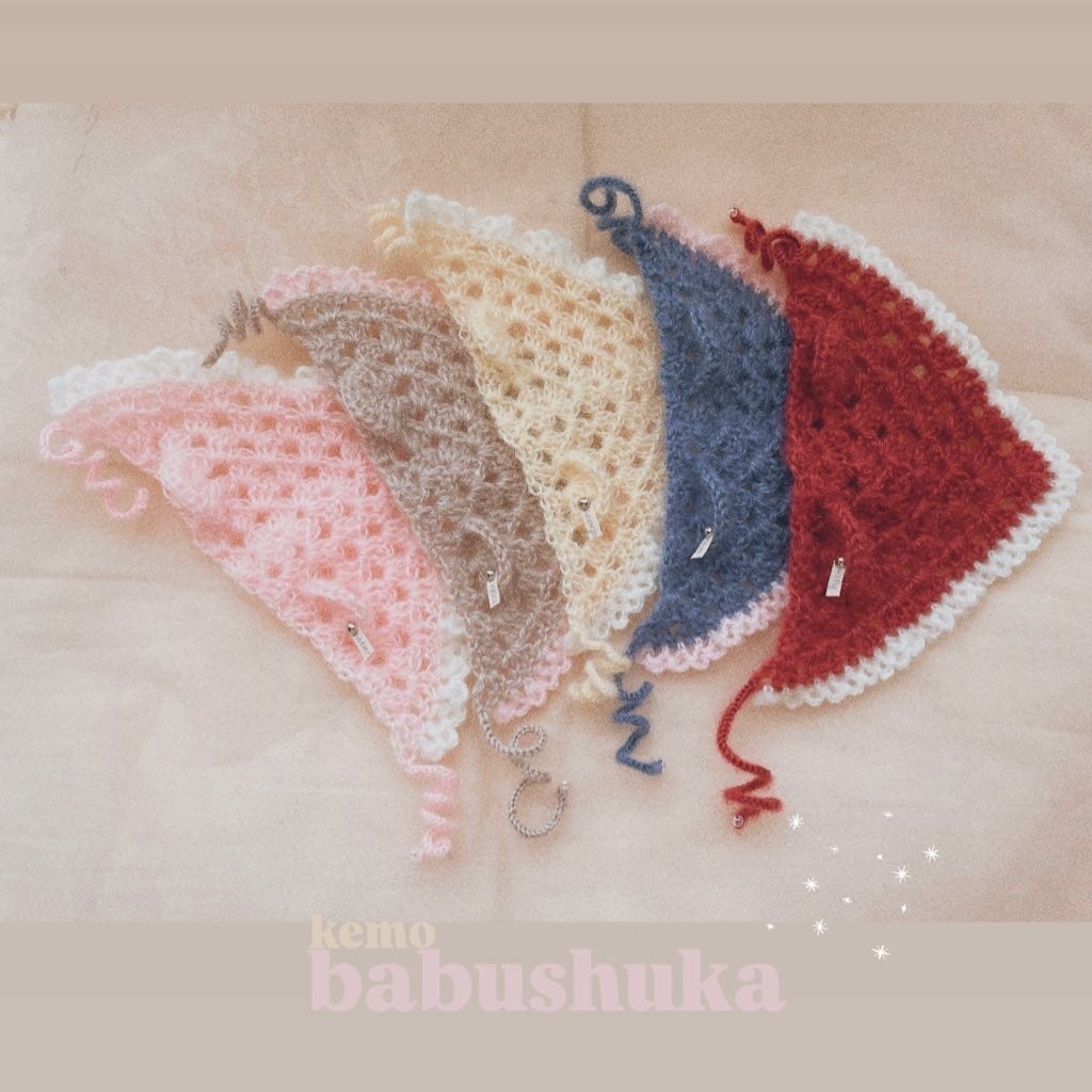 モヘアの毛糸でざっくり編んだ耳付きバブーシュカ❄︎。:*
