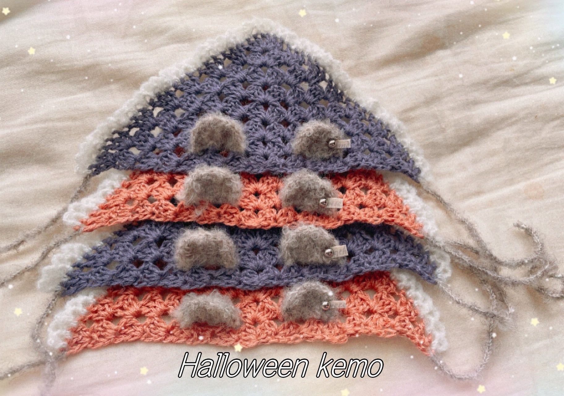 ハロウィン以外でも着用できるように、フリルは白いモヘアで編みました⋆͛*͛