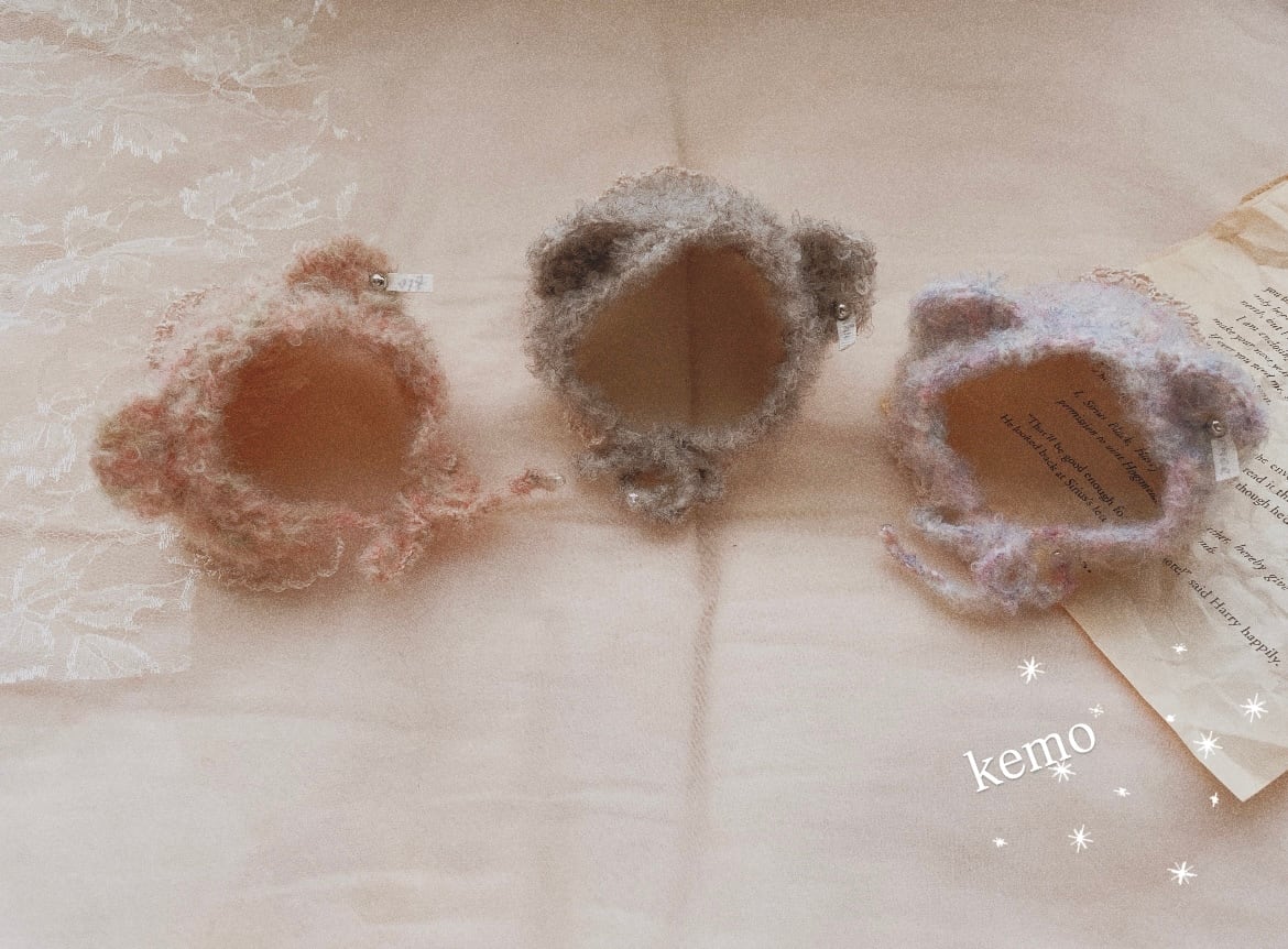 ウールの毛糸でざっくり編んだ耳付きバブーシュカ❄︎。:*