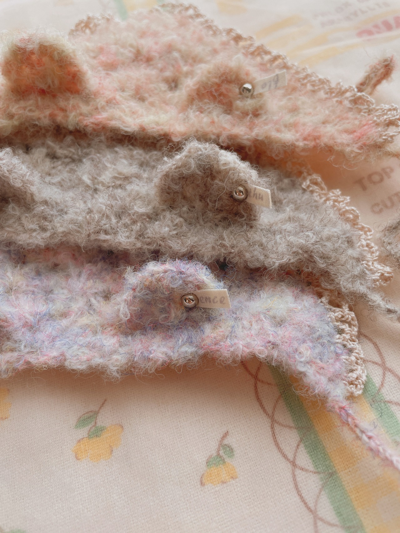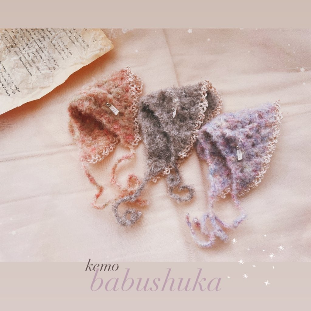 ウールの毛糸でざっくり編んだ耳付きバブーシュカ❄︎。:*
