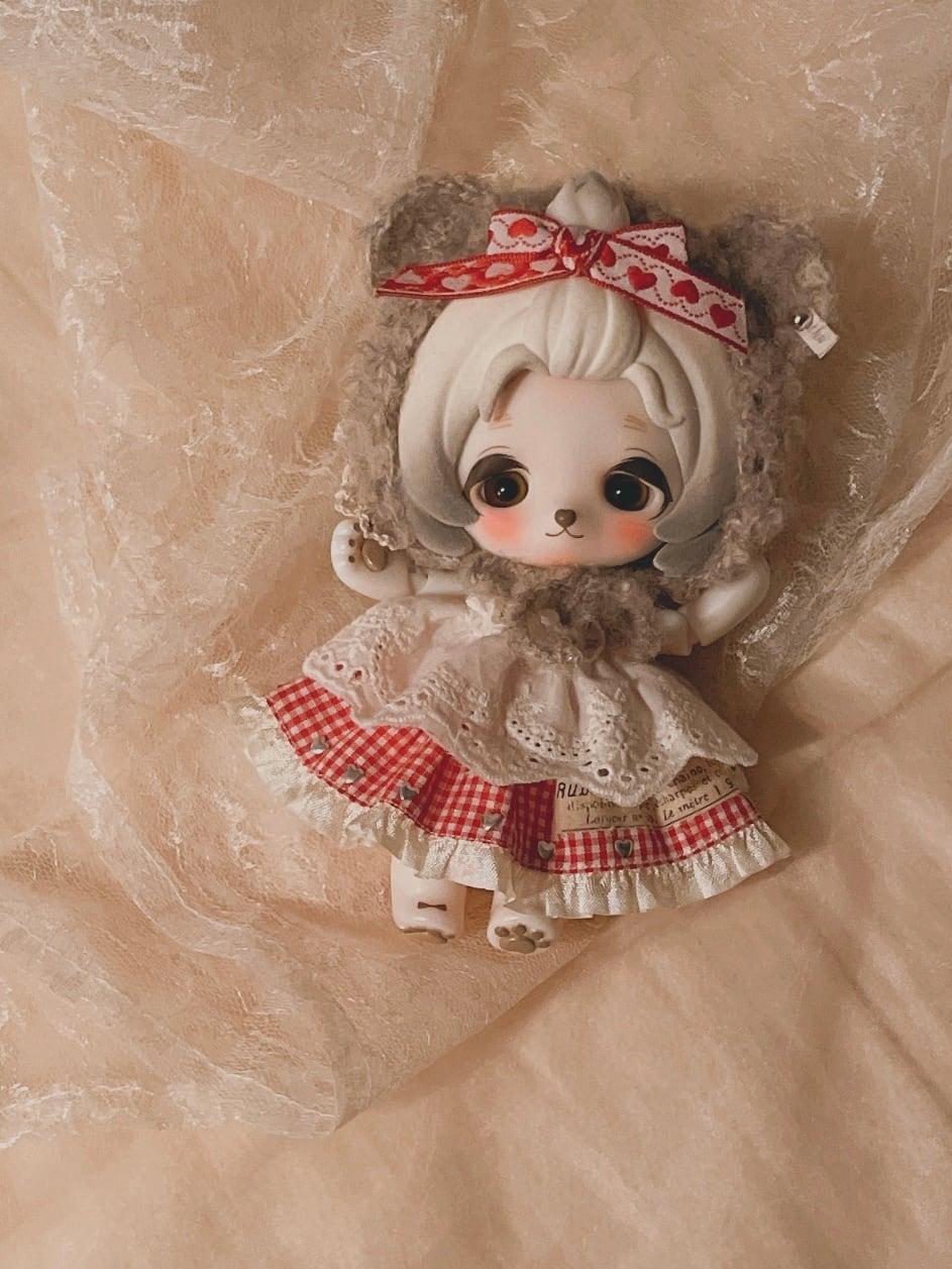 サイズは紐で調節可能なのでいろんなぬいちゃんとドールに着用していただけます♡